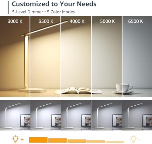 – **Versatile Lighting Options:** Tailor your lighting experience with 5 color modes (Cool White, Natural White, Warm White, Warm Yellow, and Soft Yellow) and 5 adjustable brightness levels. Whether you need bright light for detailed work or softer illumination for relaxation, this lamp has you covered.