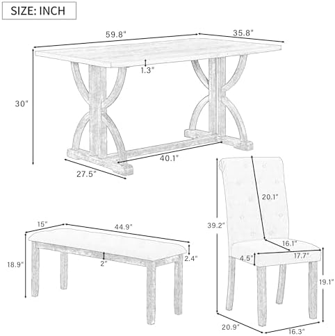 Upgrade your dining area with the Merax 6-Piece Wood Dining Table Set with Bench and enjoy a perfect combination of style, comfort, and durability. Make every meal a memorable occasion!